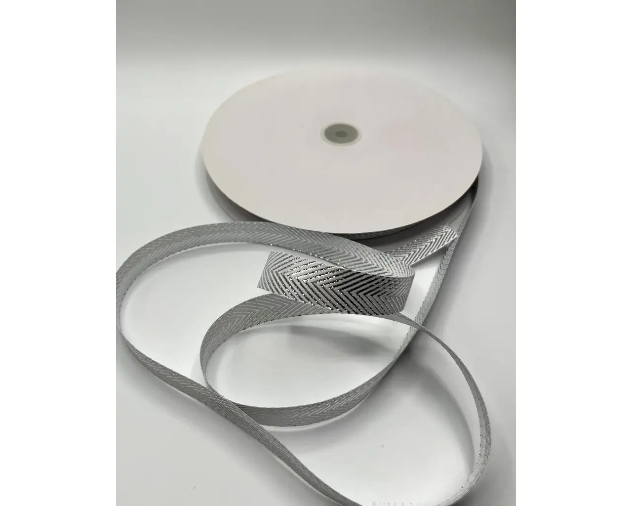 100 Yards x 3/8″ Metallic Chevron Ribbon -Silver/White
