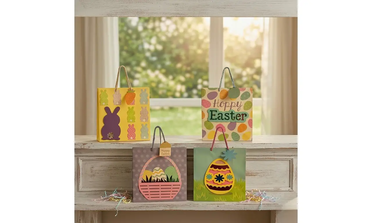 Pack of 48/Assorted Easter Gift Bags 12″H 10″W – Pink/Yellow/Blue