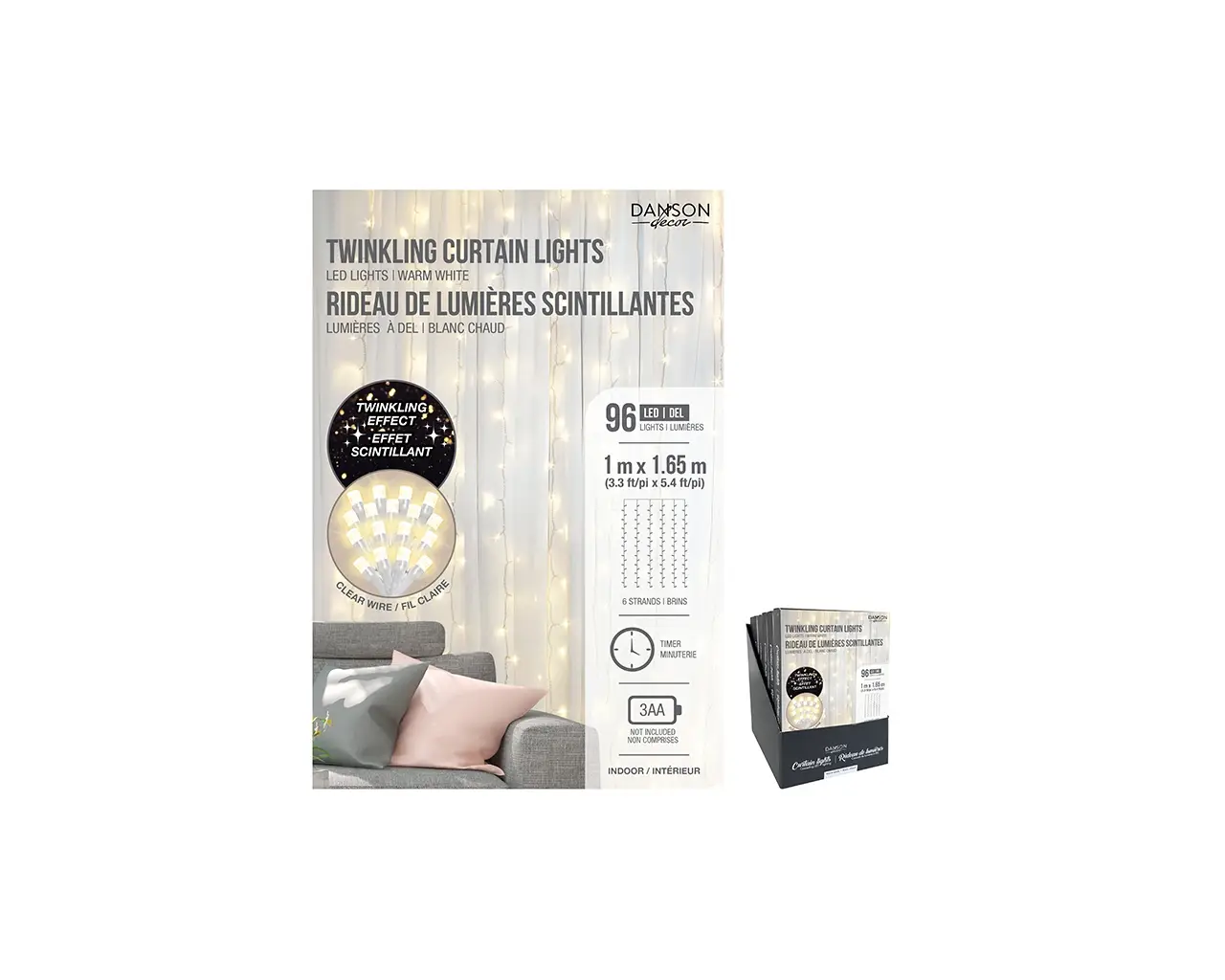 / Battery LED Curtain Lights 3.3’Wx5.4’L- Warm White / 96 lights 6 strands Indoor