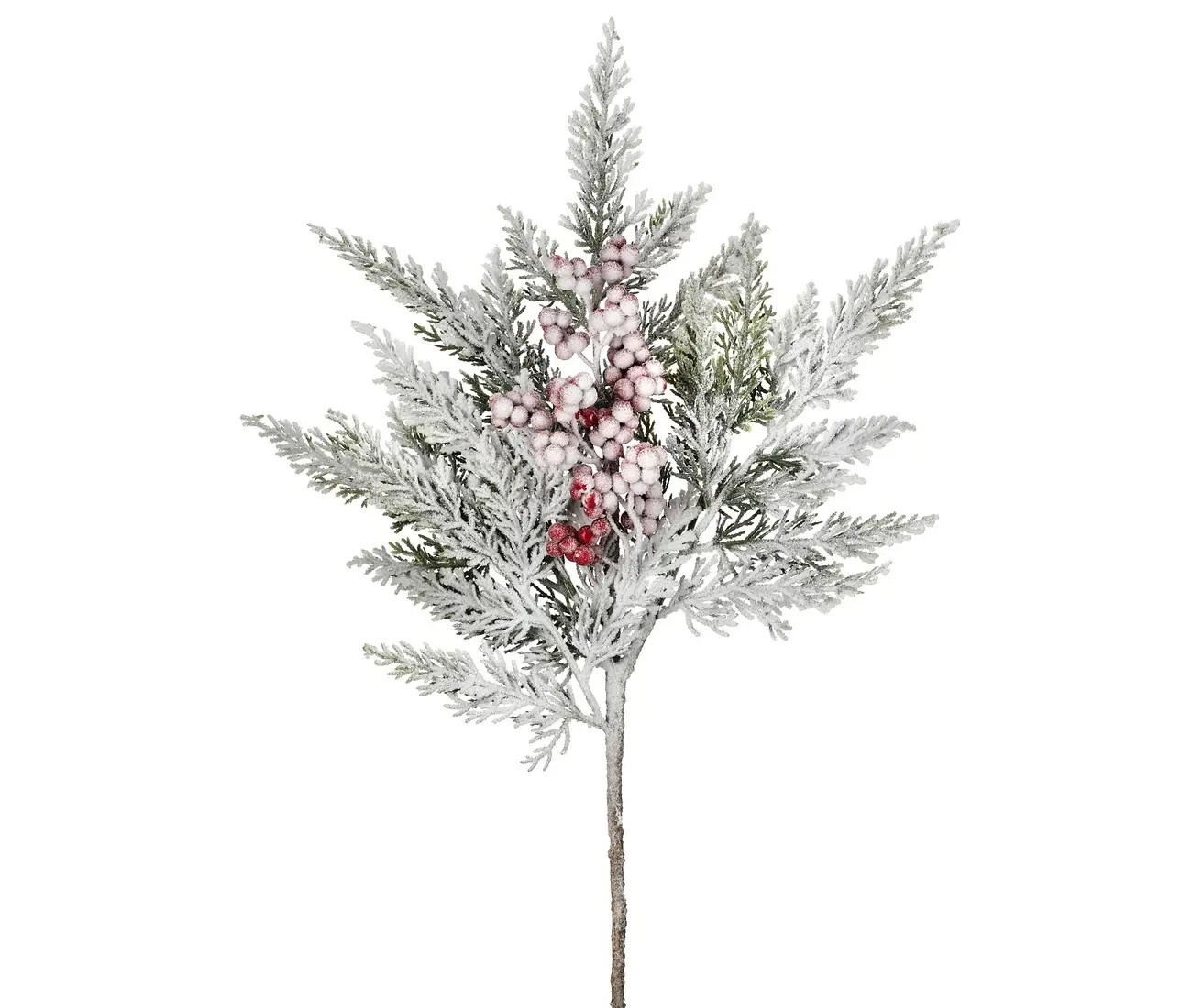 Flocked Cedar with Berry Spray 16″ -Green/White/Red