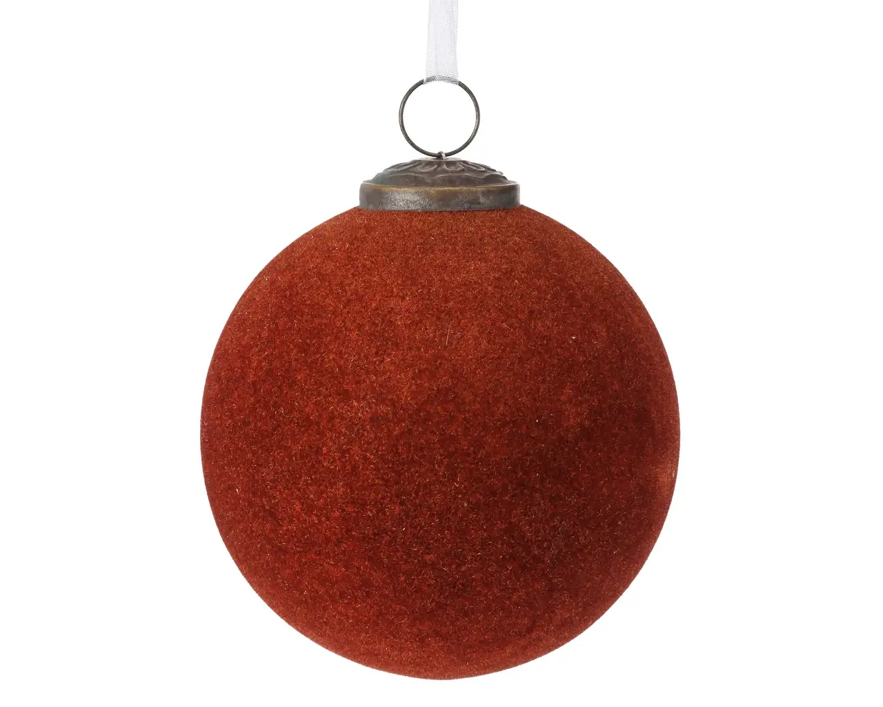/ Flocked Glass 4″ Ball Ornament – Brown