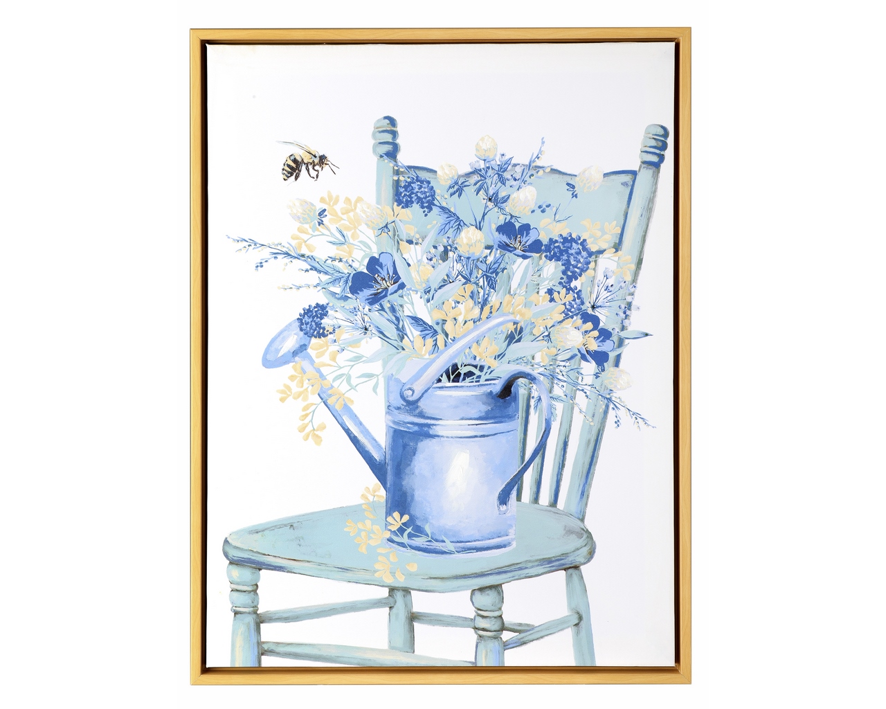 / Framed Flowers on Chair Canvas 15″x19.5″T – Blue/White