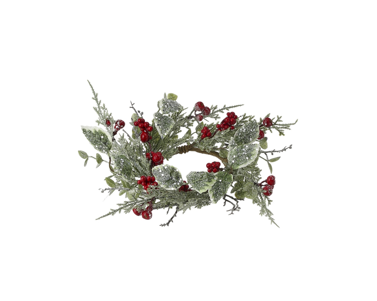 / Frosted Holly/Berry 14″ Candlering – Green/Red