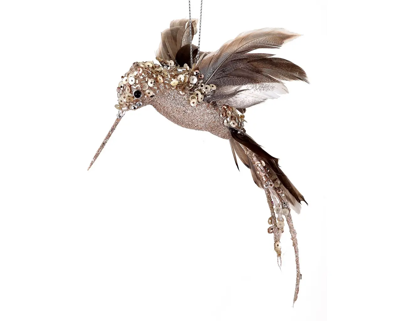 Glitter/Bead/Feather 8″ Hummingbird – Champagne