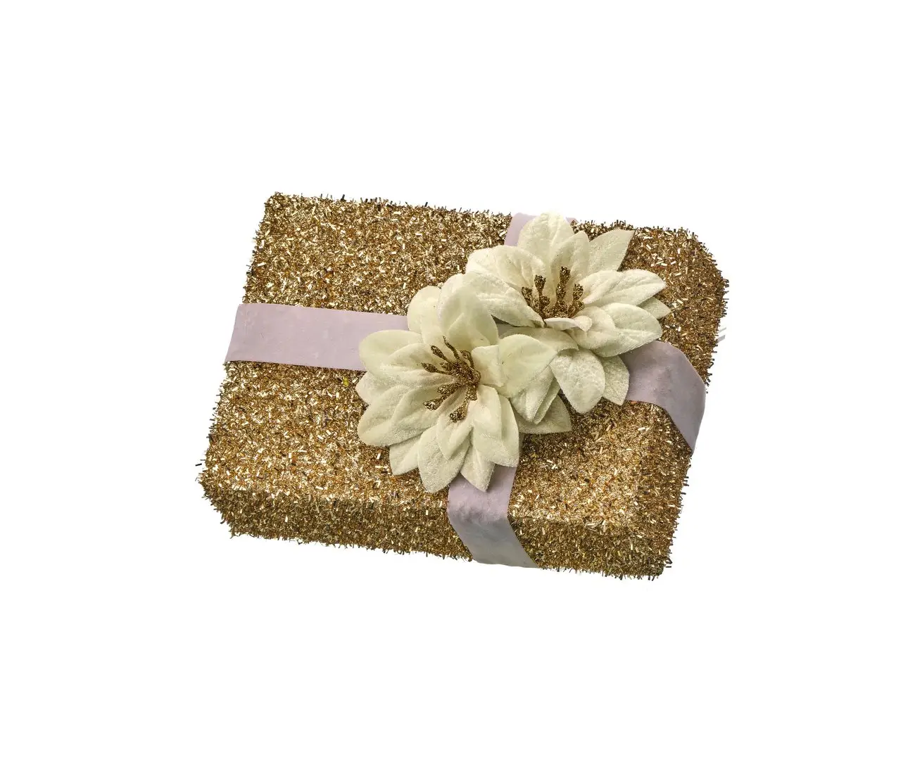 / Glitter/Poinsettia Gift Box 7″Lx5″Wx2″H -Champagne