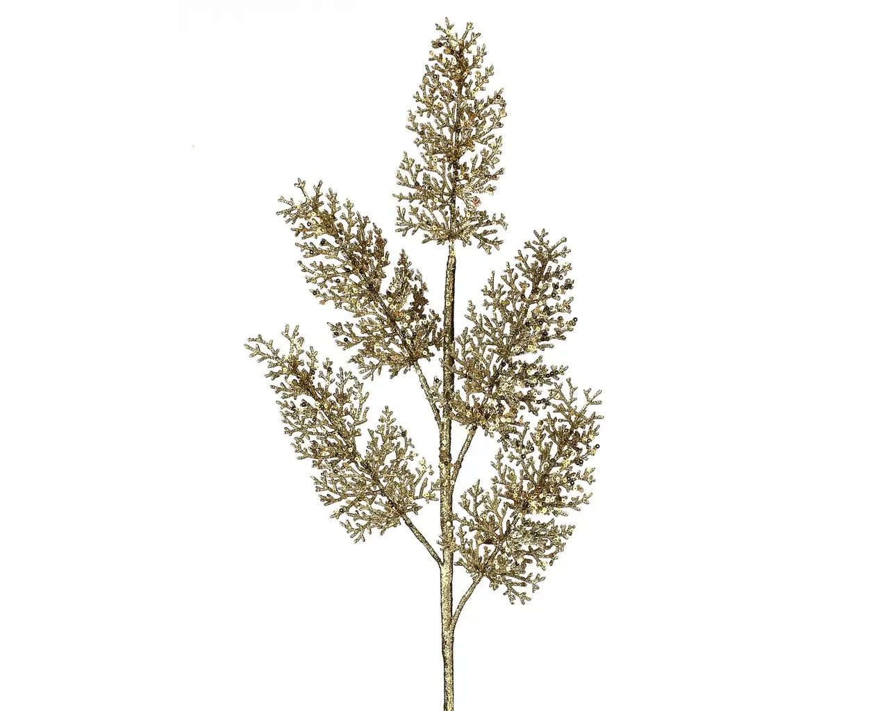 Glitter/Sequin Coral Leaf 31″ Spray – Gold