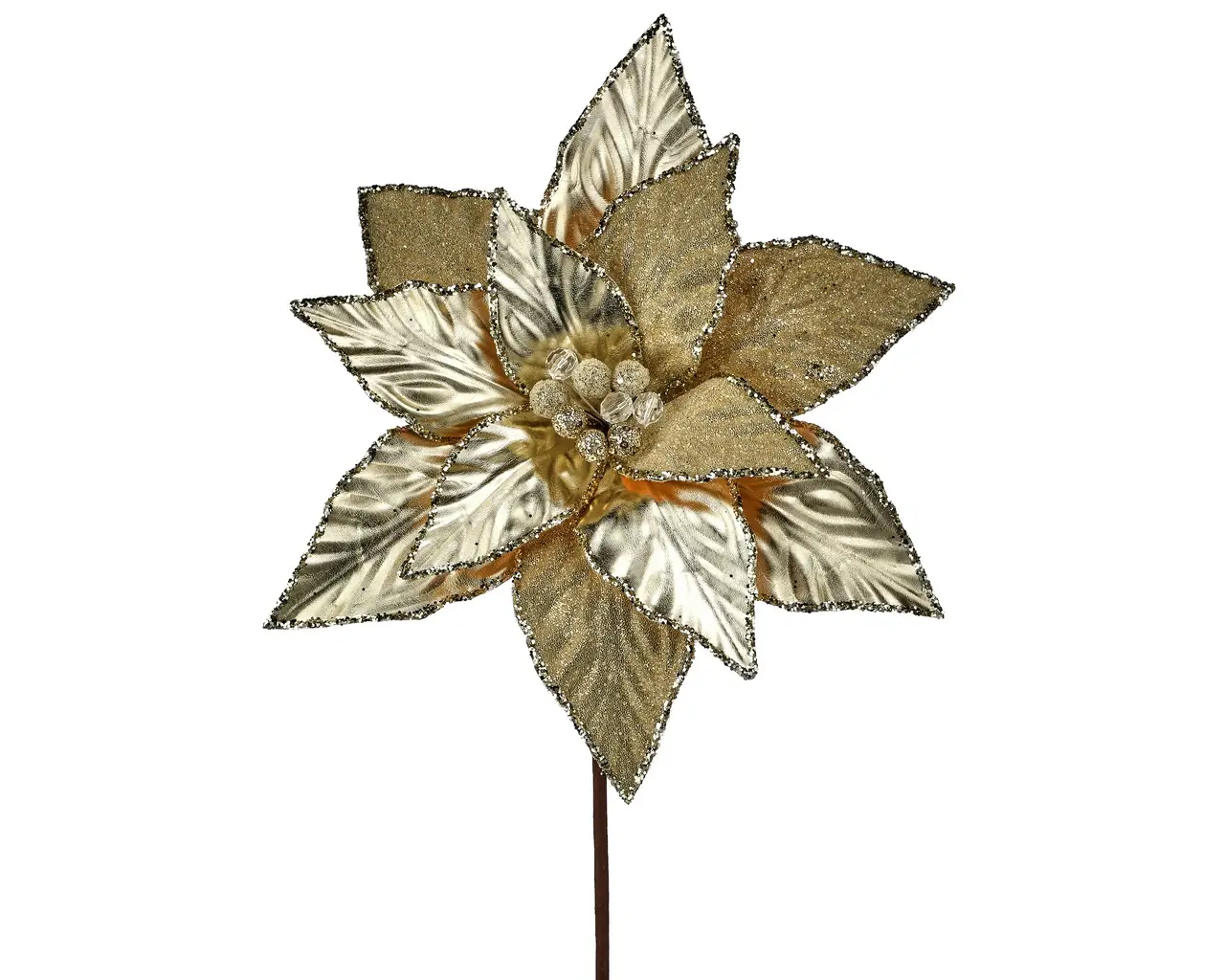 Metallic/Glitter Poinsettia 22″ Stem – Champagne