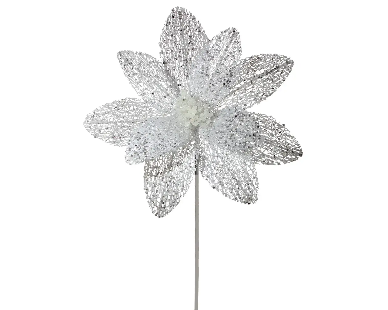 Mica/Glitter Net Poinsettia 22" Spray - White quantity