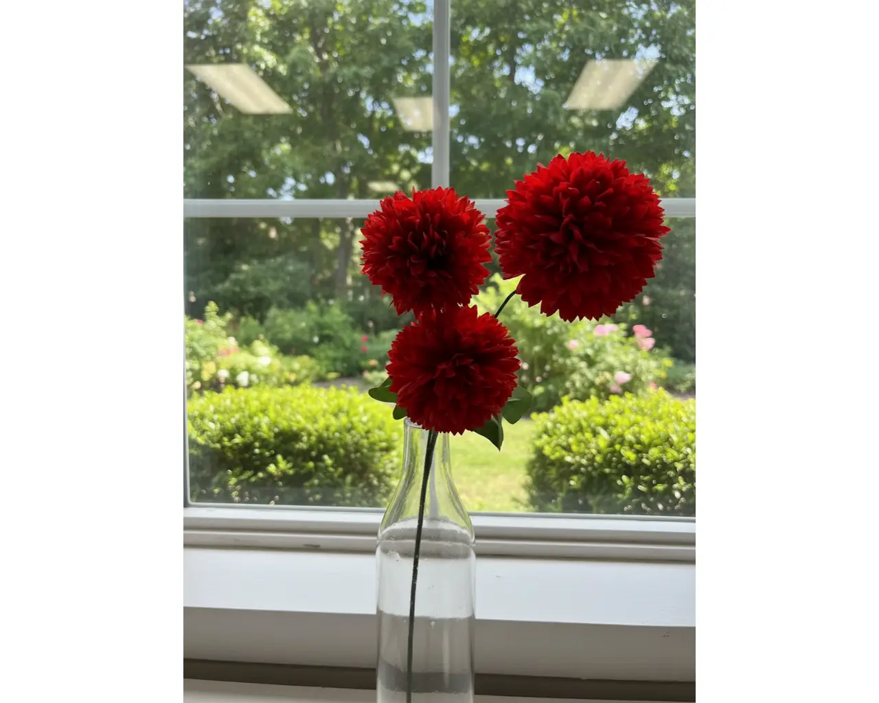 / Pom Flower Spray x3 Heads 27″ – Light Red