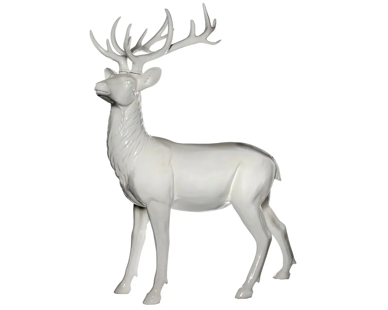 / Resin 48″L 63″H Standing Modern Deer – White