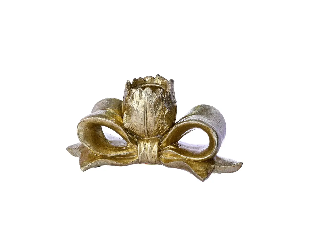 Resin Bowtie/Rose Taper Holder 6" - Champagne quantity