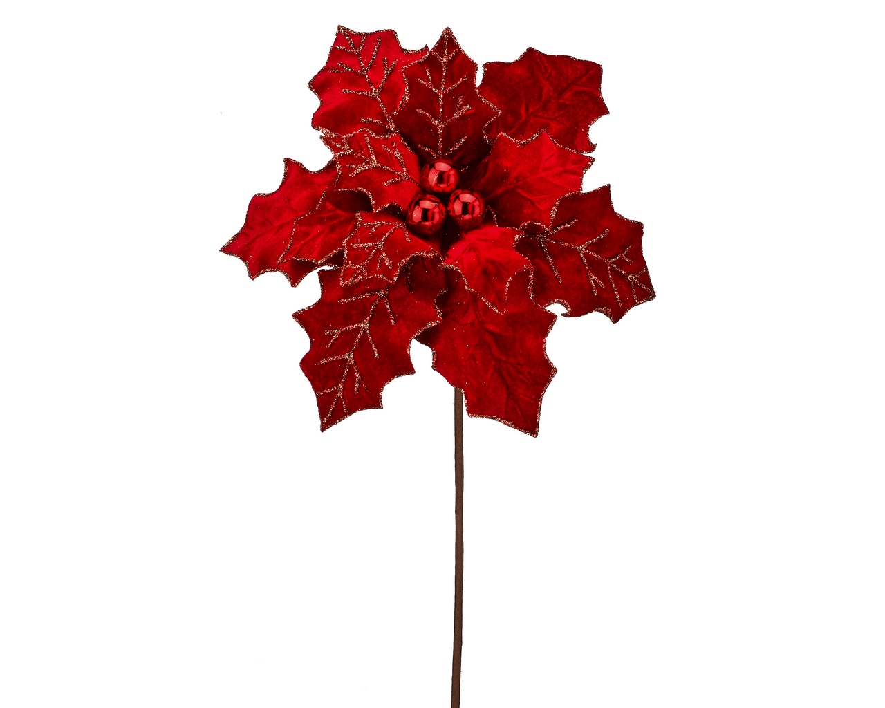 Royal Velvet Poinsettia 22″ Stem – Green/Red