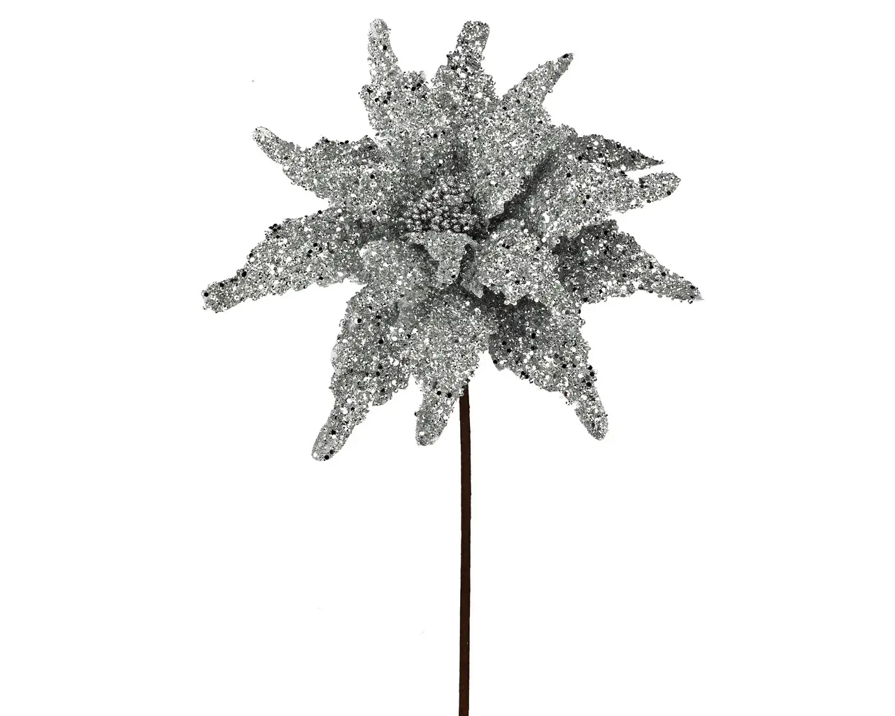 Sequin/Glitter Poinsettia 22″ Stem – Silver