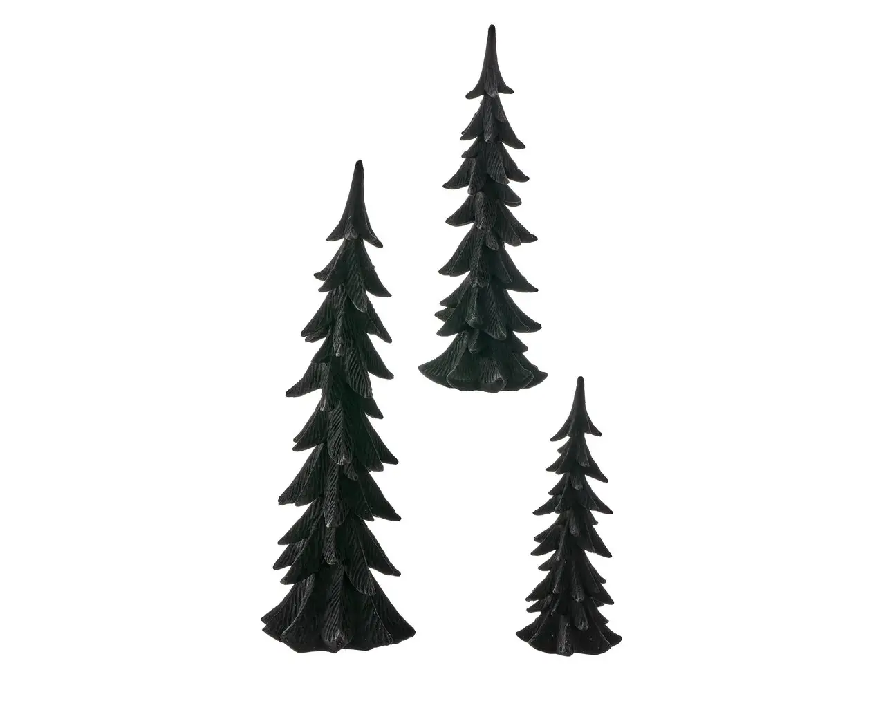 / Set of 3 Resin Flocked Tree 10″-17.7″ – Black