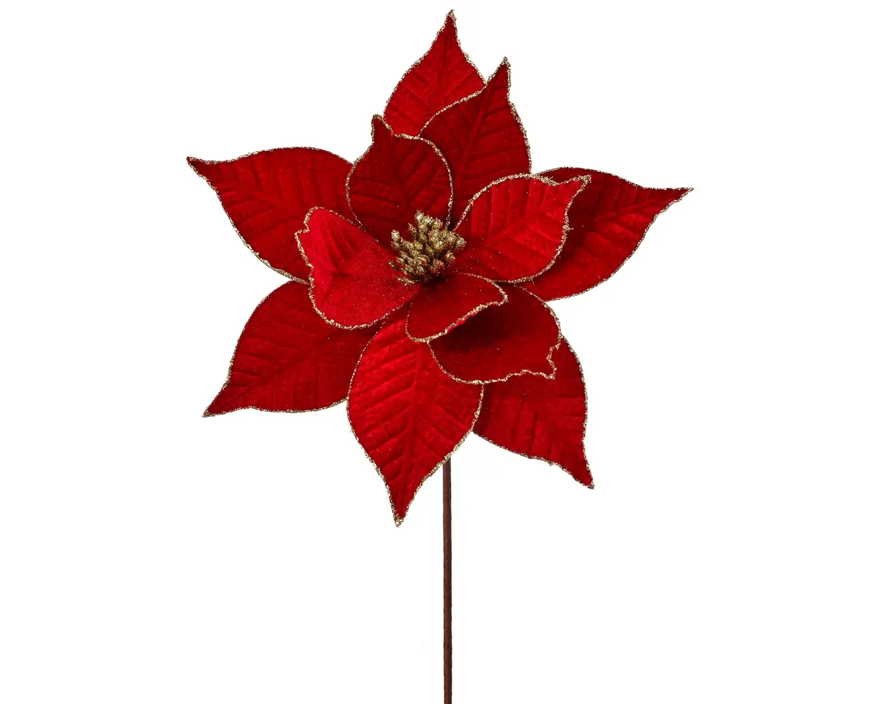 / Velvet/Glitter Edge Poinsettia 22″ Stem – Red/Gold