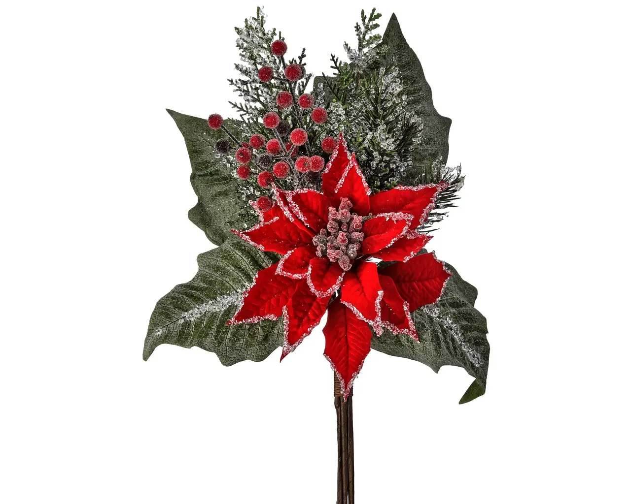 Velvet Poinsettia/Berry/Pine Cone 20″ Bundle – Red/Green