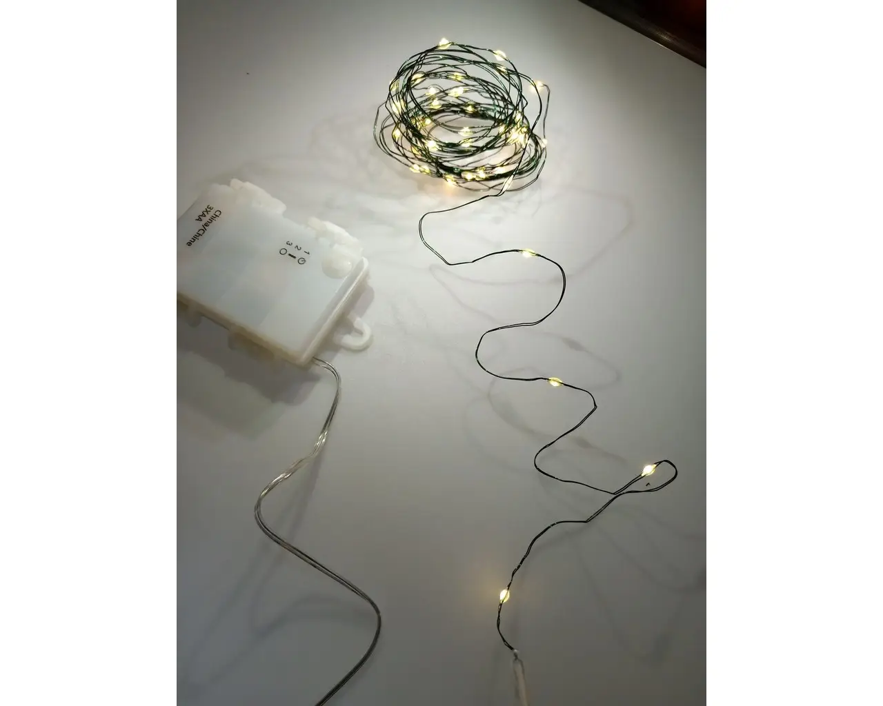 x50 LED Battery Micro Lights 16.5′ – Warm White / Green Wire